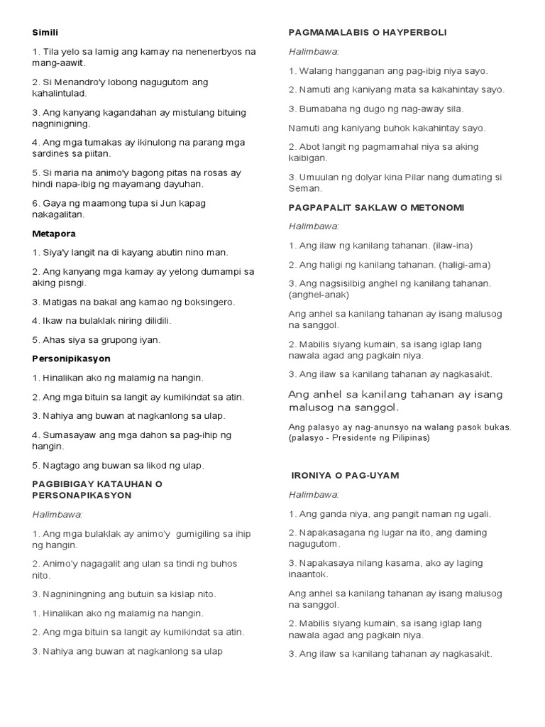 Mayroong dalawampung 20 uri ng tayutay. Ipinakita ni Don Juan ang kapirasong baro at pinaghahagkan ito. Magpupuring lahat sa iyo O Poon ang iyong nilalang lahat mong nilikha ay pupurihin kat pasasalamatan.