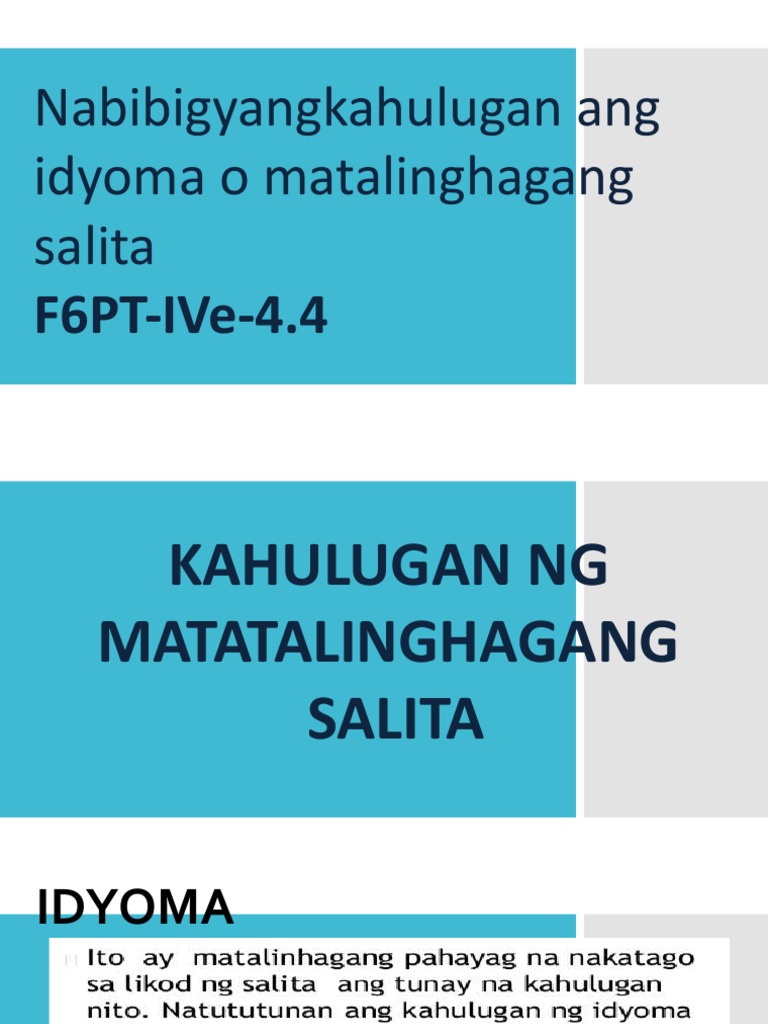 Idyomatiko At Matalinghagang Salita Pdf